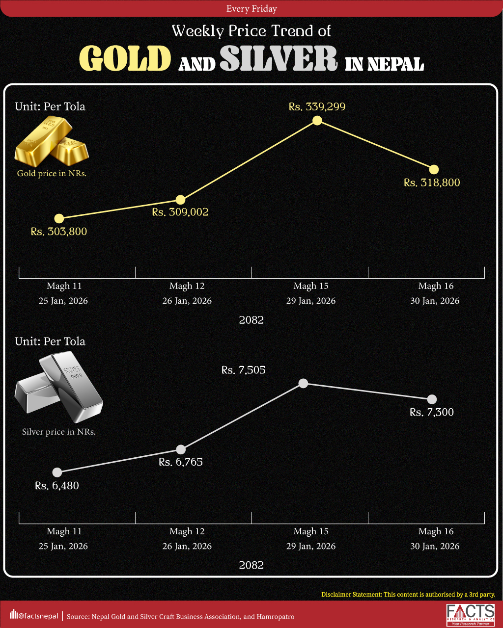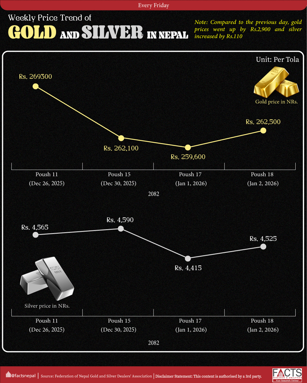 - From Baishakh to Poush, silver prices as of 2082 show a regular monthly increase, peaking during the month of Poush.