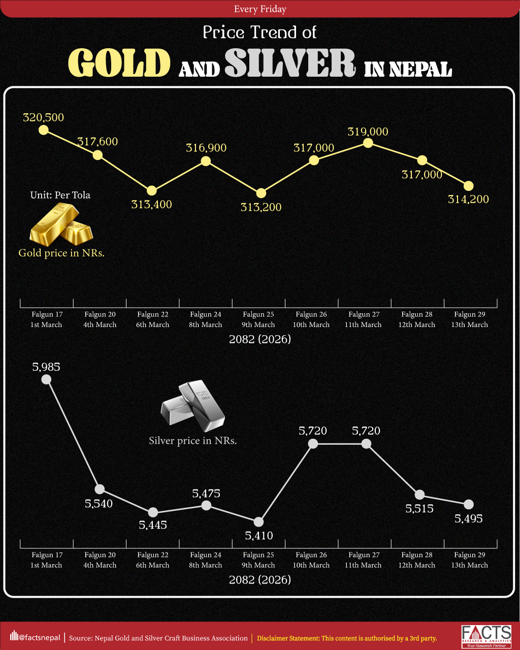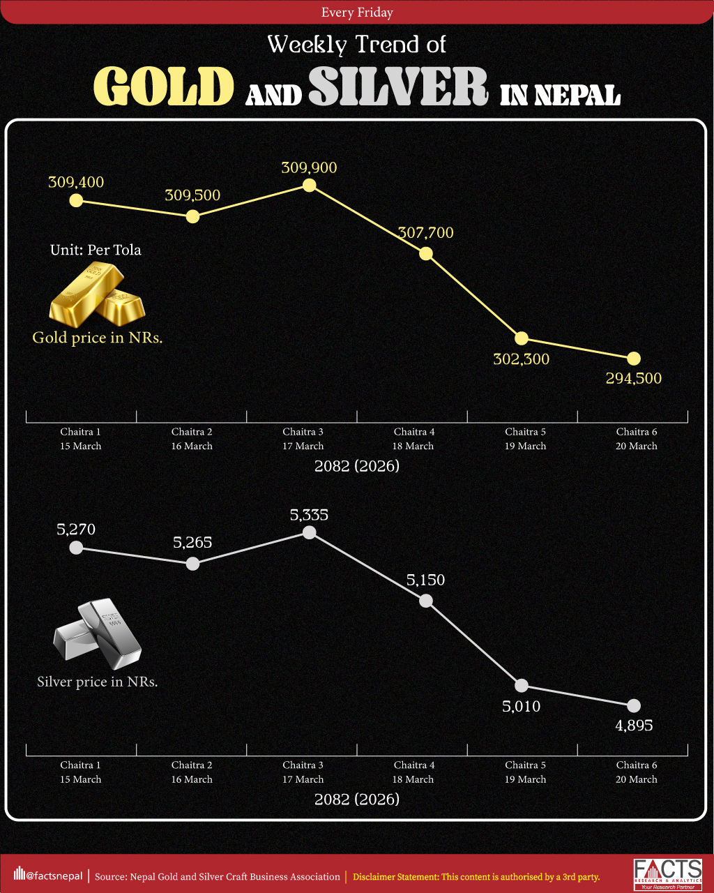 Weekly Price Trend of Gold and Silver in Nepal